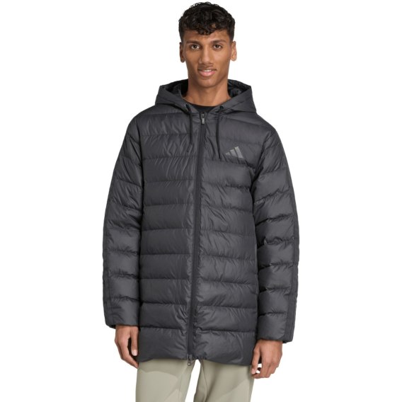 Męska kurtka adidas tworzy izolację od zimna dzięki naturalnemu wypełnieniu, które zostało zamknięte w poziomych panelach. Dłuższy fason tworzy. Trwała, odprowadzającą wodę warstwa (DWR). Technologia Climawarm. Standardowy krój z elastycznym wykończeniem dołu oraz mankietów odpowiada za naturalne ułożenie na sylwetce. Nieodpinany kaptur ze sznurkiem do regulacji. Dwukierunkowy zamek błyskawiczny. W kieszeniach bocznych z zatrzaskami ogrzejesz zmarznięte dłonie.